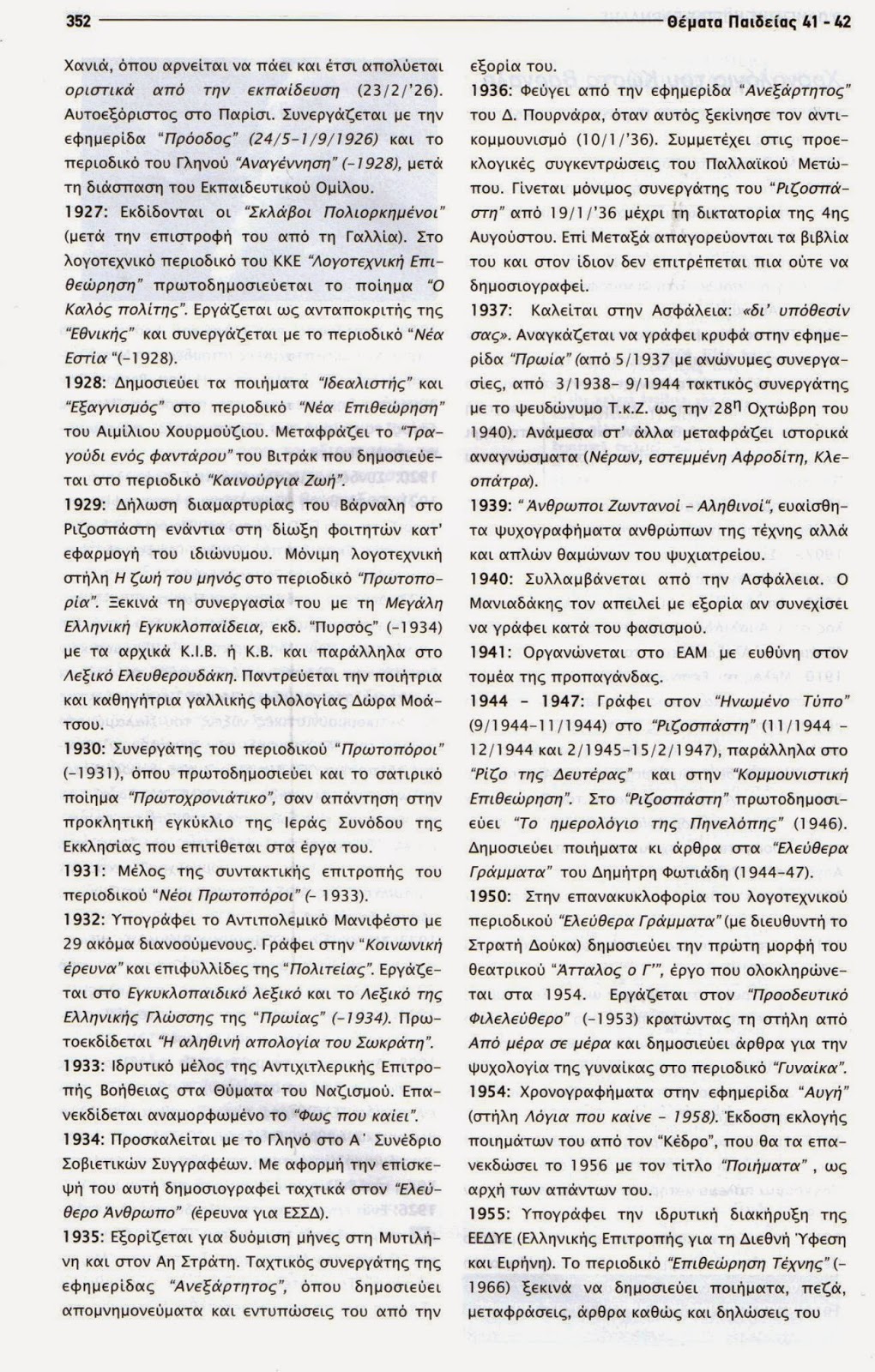 Από το τεύχος 41-42 του περιοδικού ΘΕΜΑΤΑ ΠΑΙΔΕΙΑΣ που ήταν αφιερωνένο στον Κώστα Βάρναλη , είναι το χρονολόγιο του ποιητή.